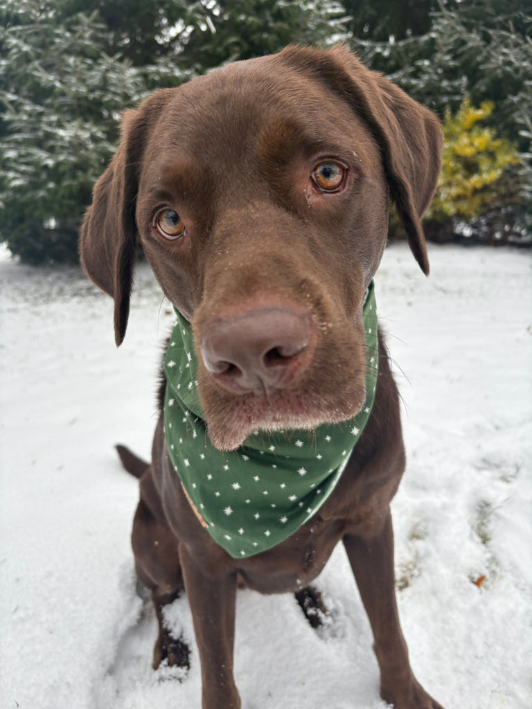 Franklin+Co.'s scrunchie bandanas are pup proof with an easy on/off application.