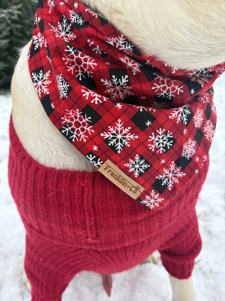 Blitzen - Red Plaid with Snowflakes and Reindeer Scrunchie Dog Bandana