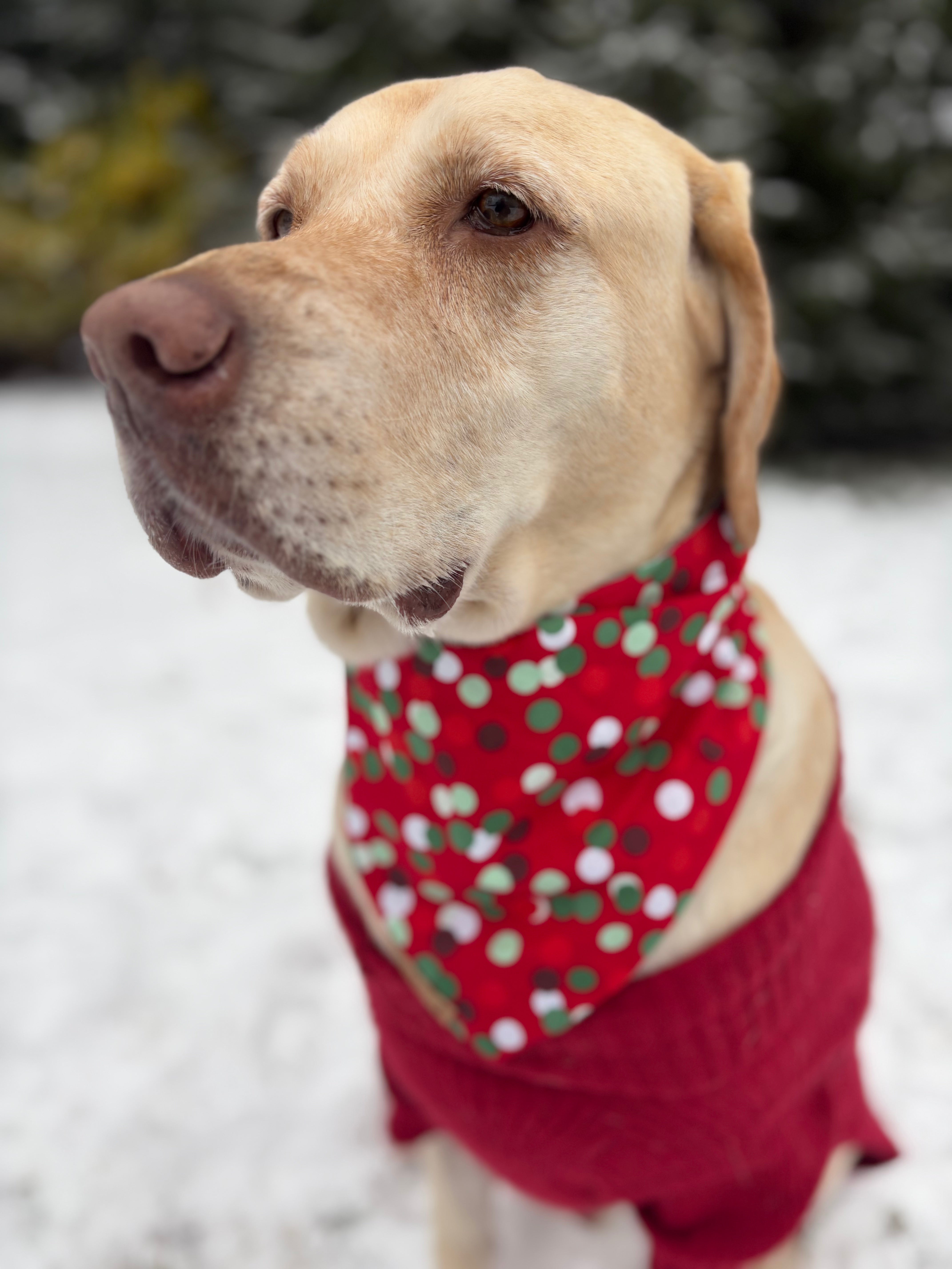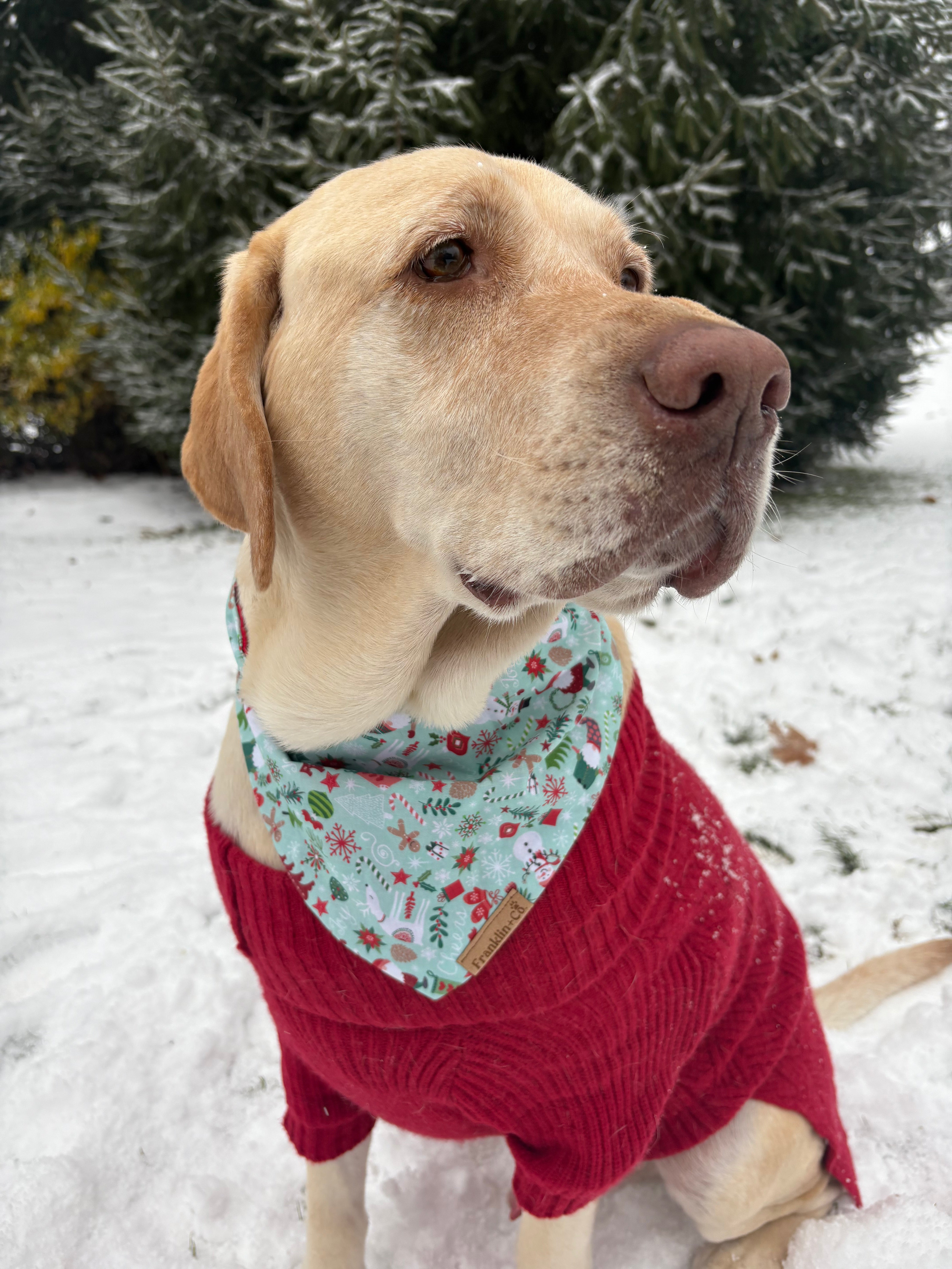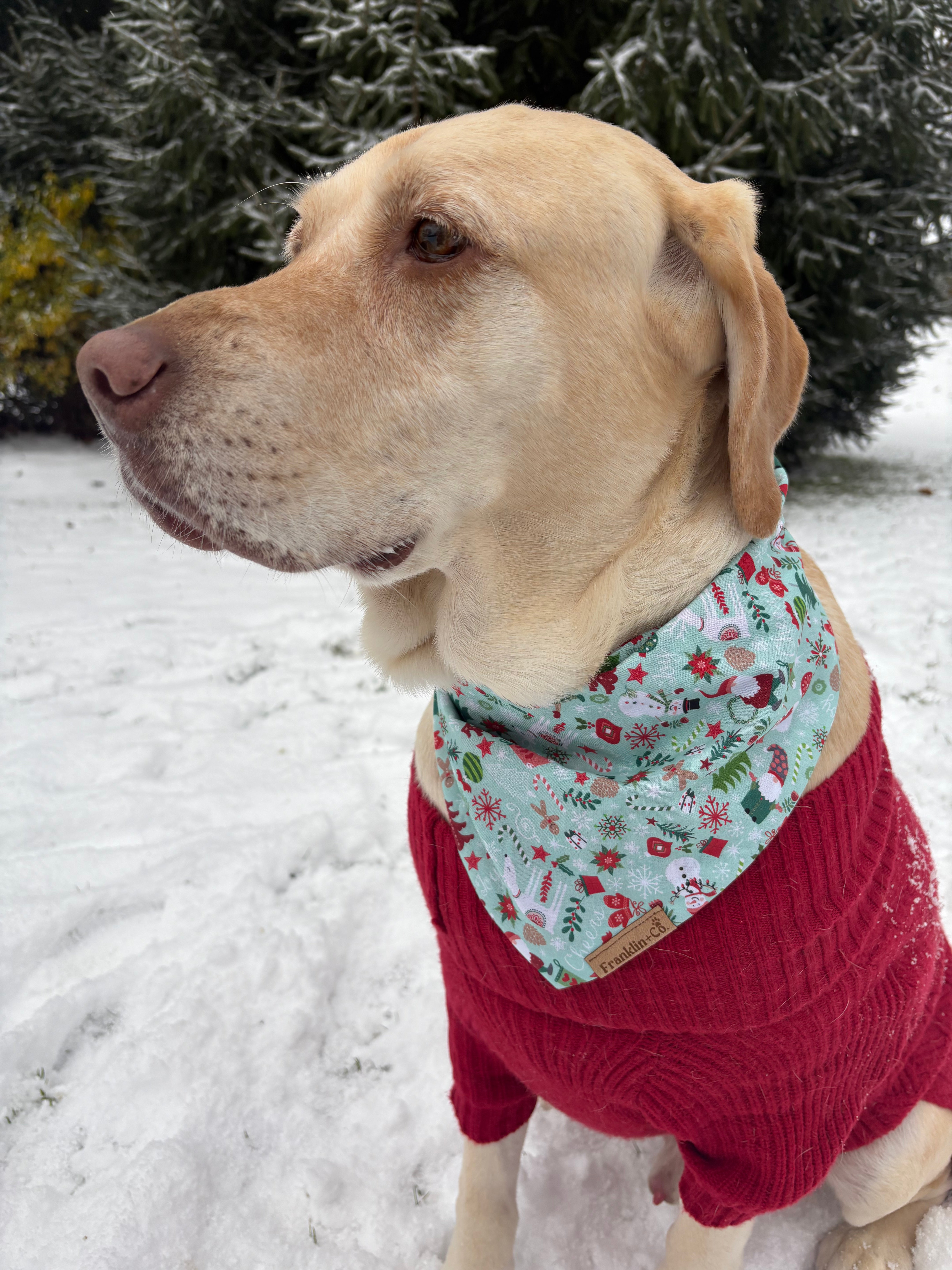 Merry - Christmas Dots and Christmas Characters Scrunchie Dog Bandana